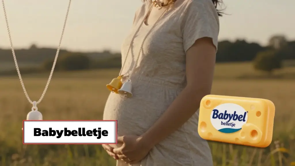 Babybelletje has three distinct meanings: a pregnancy necklace with soothing bells worn during maternity, a Mini Babybel wax-coated cheese snack, and soft baby products. The Dutch term combines “baby” with “belletje” (little bell), explaining its varied applications across parenting, food, and infant care contexts.